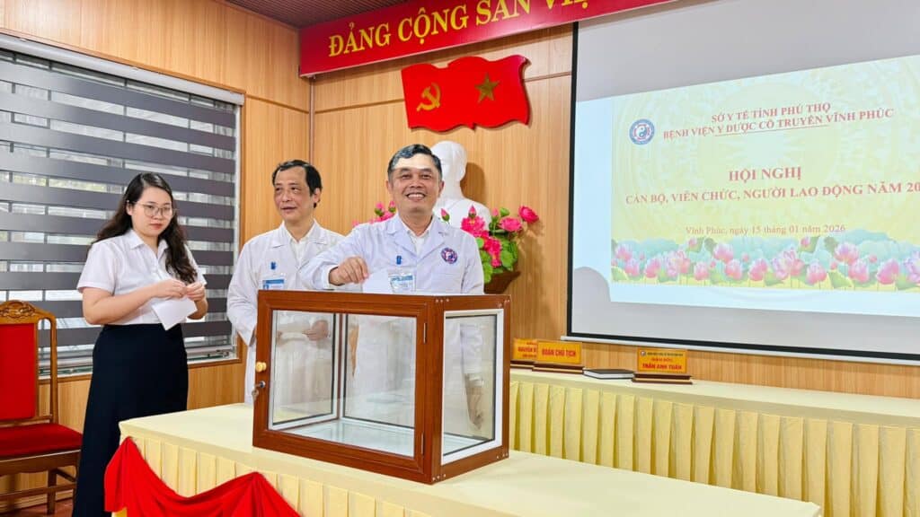 Kết thúc hội nghị, Nghị quyết Hội nghị cán bộ, viên chức, người lao động năm 2026 đã được thông qua với sự thống nhất cao, thể hiện quyết tâm của tập thể Bệnh viện Y Dược cổ truyền Vĩnh Phúc không ngừng đổi mới vượt qua mọi khó khăn, thử thách, hoàn thành nhiệm vụ chính trị là nâng cao chất lượng công tác chăm sóc sức khỏe nhân dân, đồng thời xây dựng môi trường làm việc văn minh, hiện đại, hiệu quả hơn nữa.