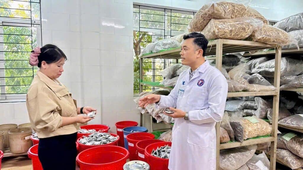 Hệ thống dược liệu, khu sắc thuốc và cấp phát thuốc sắc.