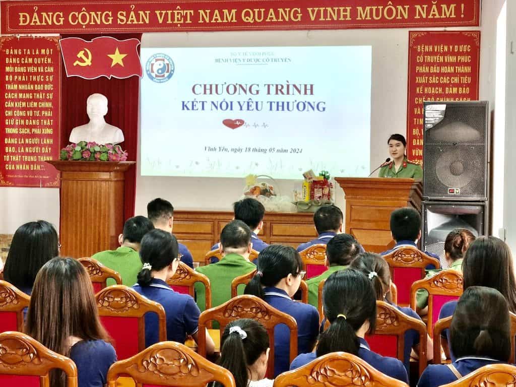 Sáng ngày 18/05/2024, Bệnh viện Y Dược cổ truyền tỉnh Vĩnh Phúc kết hợp Đoàn thanh niên Công An tỉnh Vĩnh Phúc cùng Ngân hàng TNHH MTV Shinhan Việt Nam, chi nhánh tỉnh Vĩnh Phúc thực hiện tổ chức chương trình “Kết nối yêu thương” và Lễ phát động trồng cây lưu niệm kỷ niệm 134 năm Ngày sinh Chủ tịch Hồ Chí Minh (19/5/1890 – 19/5/2024).