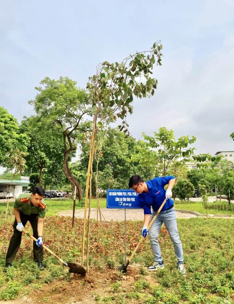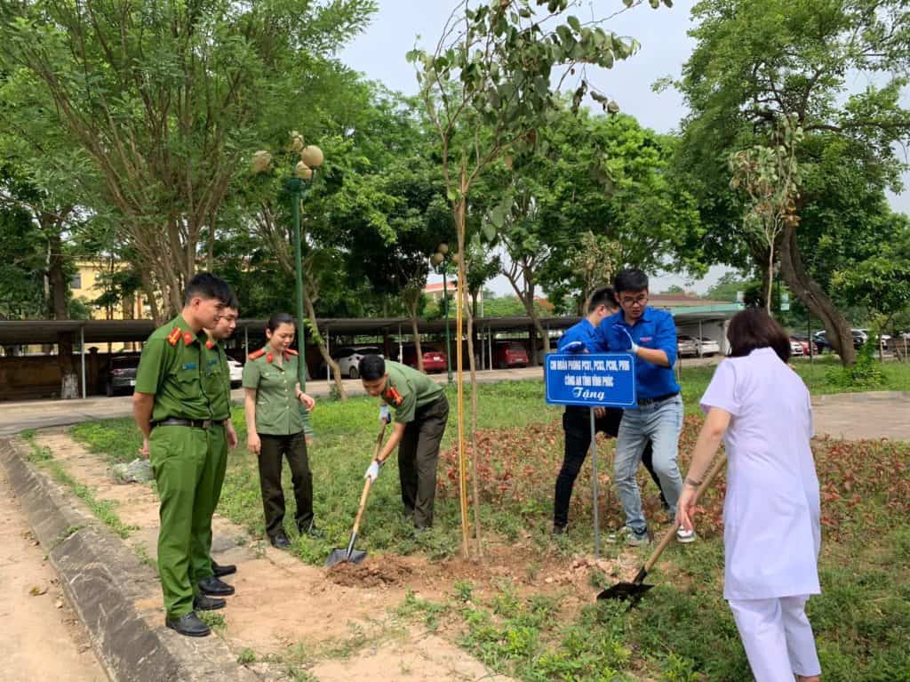 Cũng trong chương trình, Lễ phát động trồng cây lưu niệm với gần 50 đồng chí thanh niên của hai đơn vị tài trợ cùng đoàn thanh niên Bệnh viện Y Dược cổ truyền tỉnh Vĩnh Phúc đã ra quân trồng cây xanh trong khuôn viên Bệnh viện. Đến chỉ đạo và động viên có Bs CKII Ngô Thị Thu Hương – Phó Giám đốc; Ths Bùi Quốc Huy – Trưởng phòng Quản lý chất lượng; Bí thư Đoàn Thanh niên Bệnh viện; Lãnh đạo các khoa phòng trong bệnh viện.